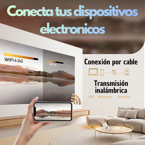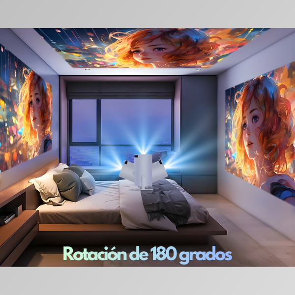 - 🔄 Proyección flexible de 180°, apunta a paredes, techos o cualquier superficie y disfruta desde cualquier ángulo.