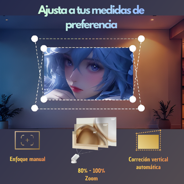 👉 Proyecta desde 40 hasta 200 pulgadas. Tú decides el tamaño del espectáculo.