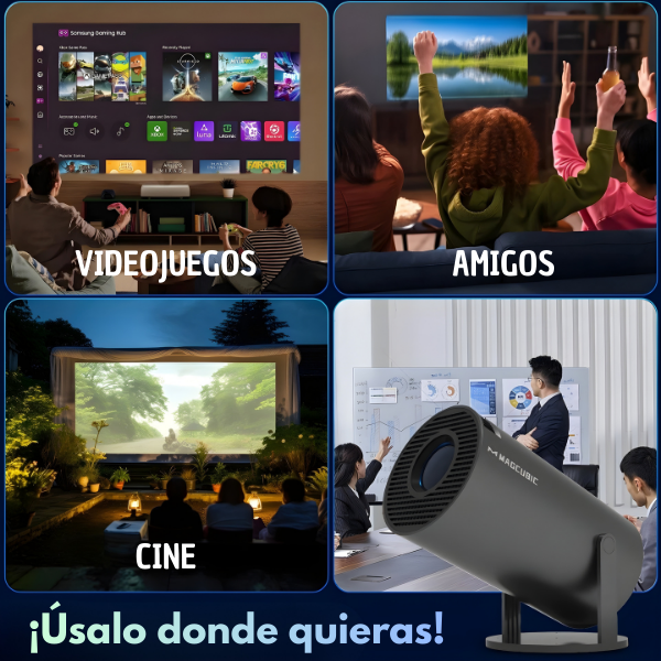 - 🎬 Disfruta una pantalla gigante de hasta 200” con una imagen nítida y brillante.